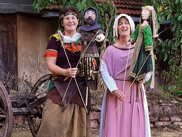 Von Hand gefertigte Stock- bzw. Stabpuppen nach historischen Vorbildern sind die Stars des Puppentheaters „Bini Fabula“. Da gibt es zum Beispiel edle Burgfräulein, tapfere Ritter, arme Bauern, ein Schlossgespenst, einen gefäääährlichen Flussdrachen, böse Raubritter, den König von Albanien und viele andere Figuren mehr.